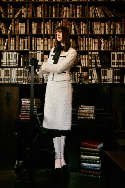 亮白色小香風針織外套