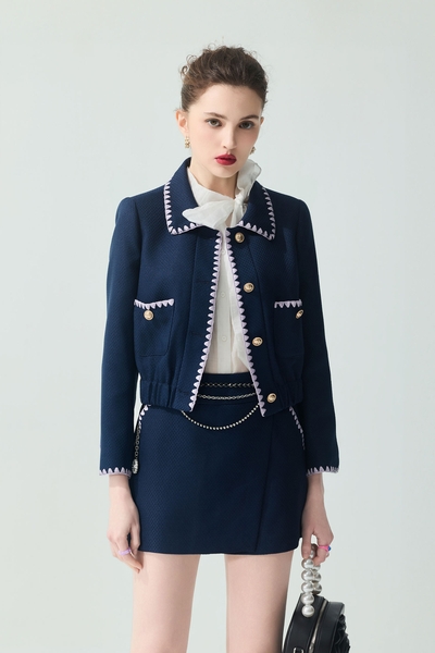 午夜藍十字紋外套