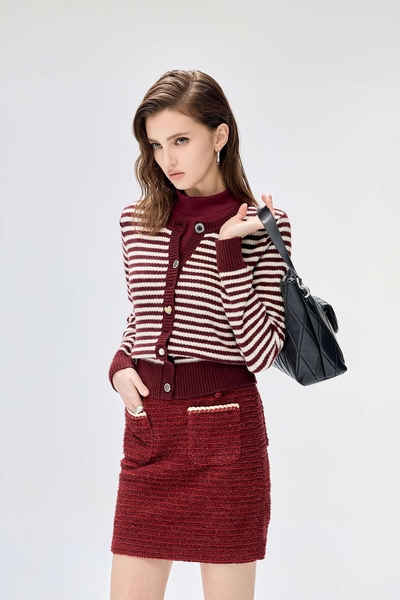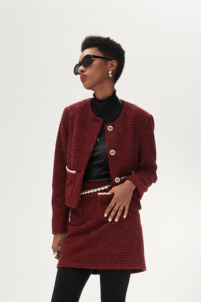個性紅拉鍊開岔中長裙
