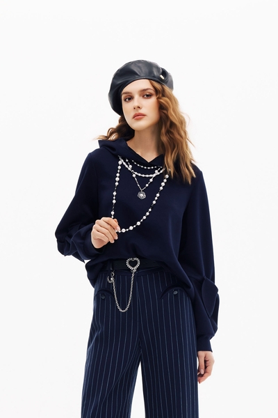 經典翻領長袖牛仔開襟外套,有彩色花朵刺繡造型,點綴珍珠裝飾,雙口袋,前門襟立體蝴蝶鈕釦扣合。