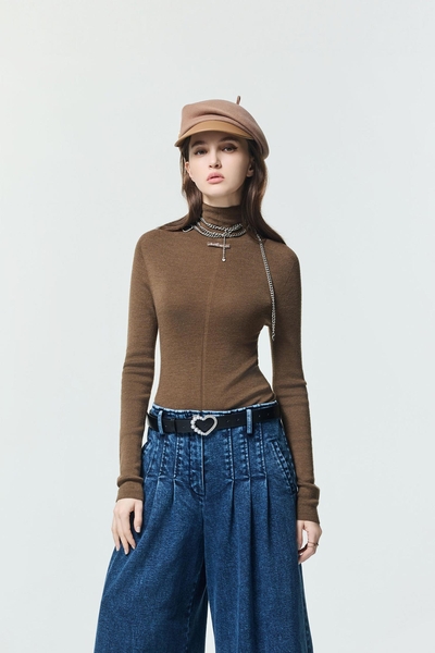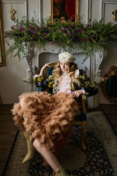 淺焦糖色立體摺飾式長裙