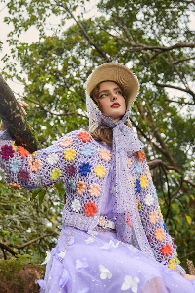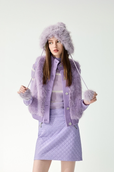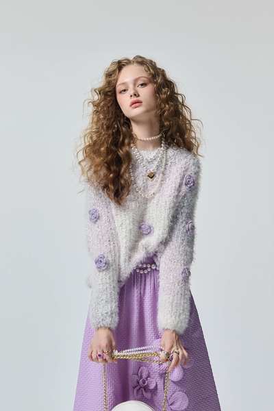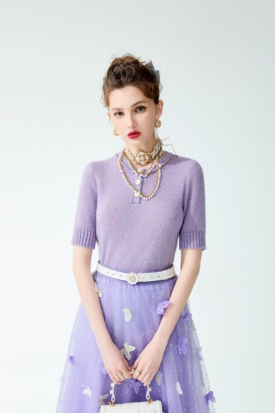 小香風柔紫花呢紗短裙