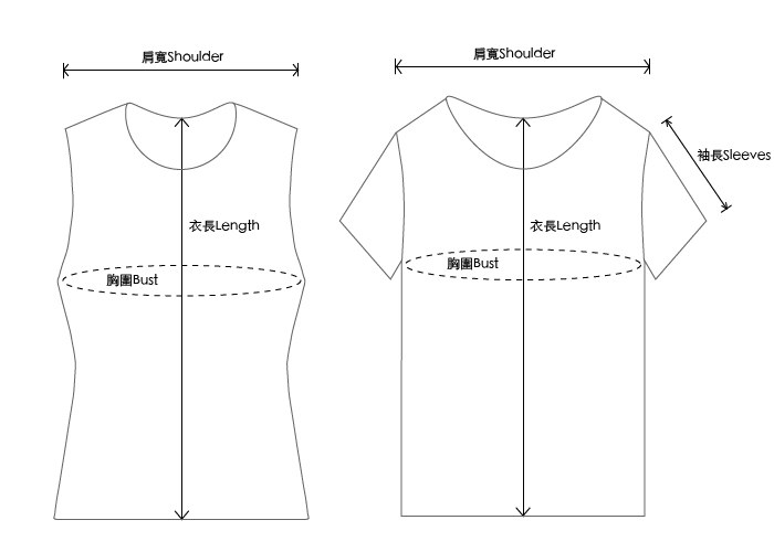 商品尺寸以實際測量為基準。尺寸表胸﹑腰﹑臀丈量方式為一整圈;其餘為平量尺寸。